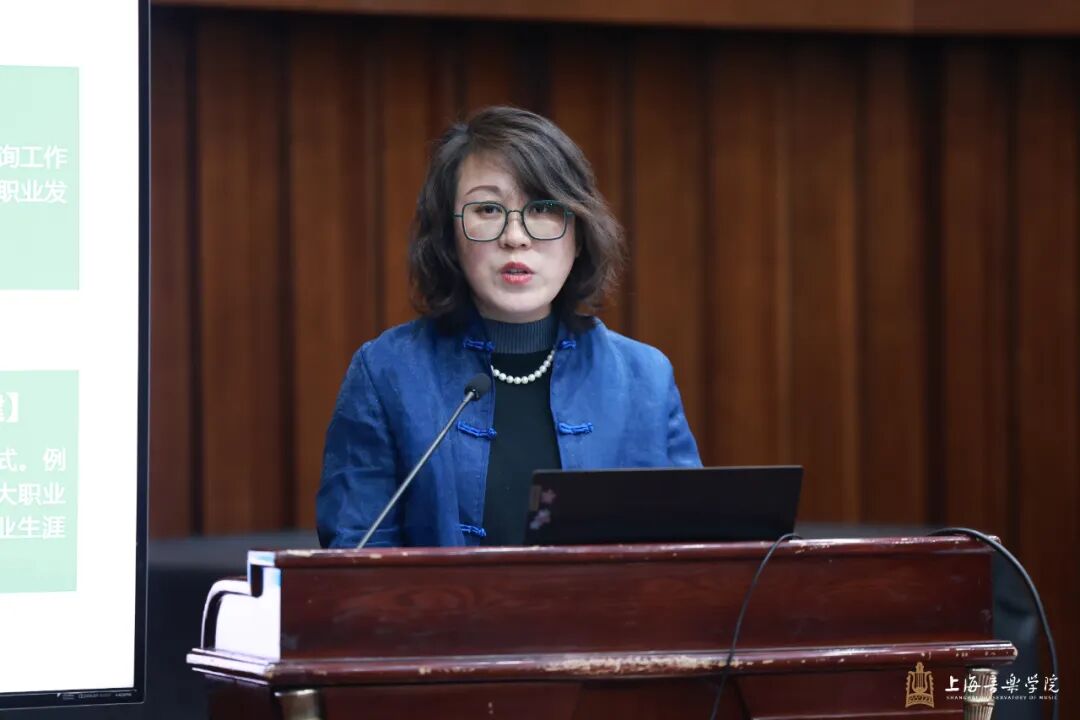 会议总结分析了当前就业形势的新变化、新挑战,为学校下一阶段就业工作锚定了方向。党委学生(研究生)工作部(处)长欧阳佳沁汇报了2025届毕业生就业创业工作总结和2026届毕业生相关情况。“乐音坊”生涯规划地图指导工作室主持人管弦系党总支副书记马静、音乐戏剧系党总支副书记(主持工作)乐佾真、音乐教育系党总支书记曾敏、教务处处长杨茹文、研究生部主任钱仁平作交流发言。