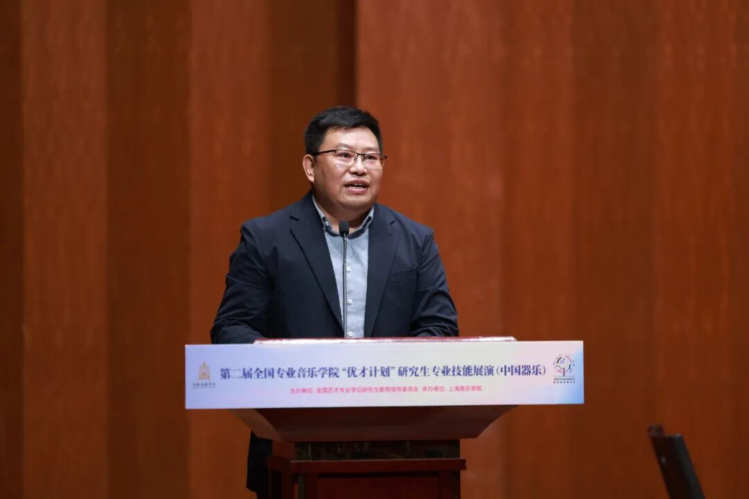 宋慧文指出,“优才计划”研究生专业技能展演作为全国性展演活动,核心目标是为音乐专业研究生搭建艺术实践平台,助力音乐专业研究生教育实现高质量发展与长效创新。他强调,当前艺术学科发展进入新阶段,音乐专业研究生教育需紧扣时代需求,在守正创新中破解培养难题,希望各院校以本次活动为契机,分享经验、深化合作,共同为我国音乐事业培育德艺双馨的优秀人才。